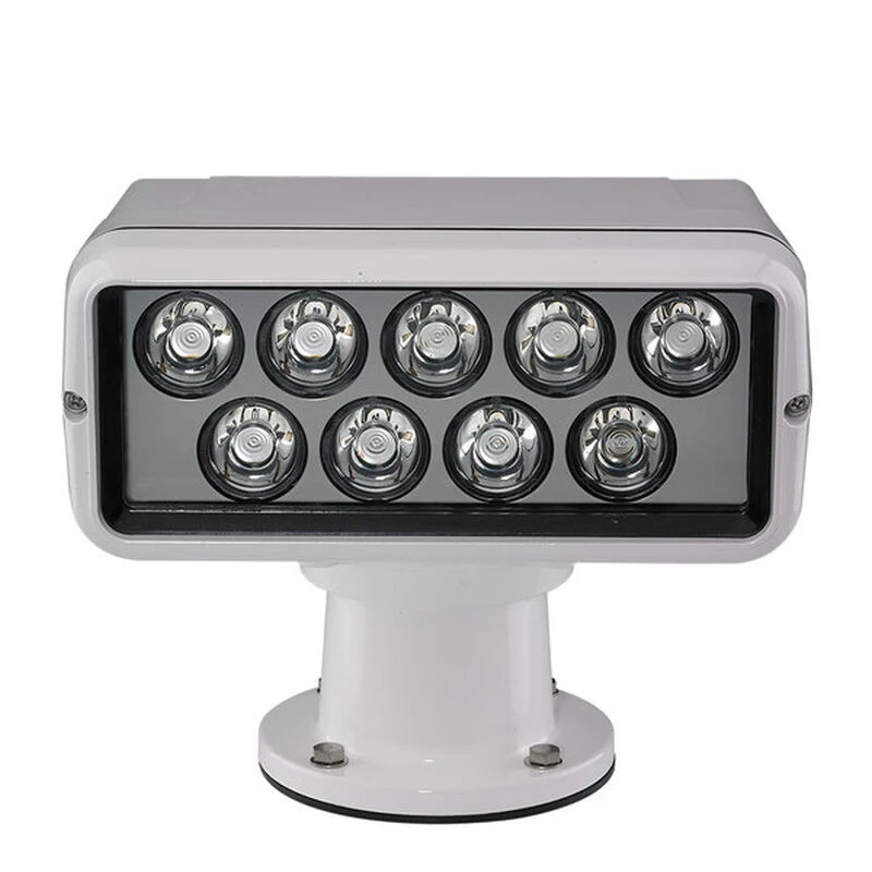 The RCL-100 LED now has reduced power consumption demand by up to 50% on 12V vessels. The die cast aluminum case is triple-primed and painted with UV stabilizer to withstand years of exposure in the harsh marine environment. The light’s internal elevation mechanisms are fully enclosed and provide precise pitch control of the beam while staying protected.