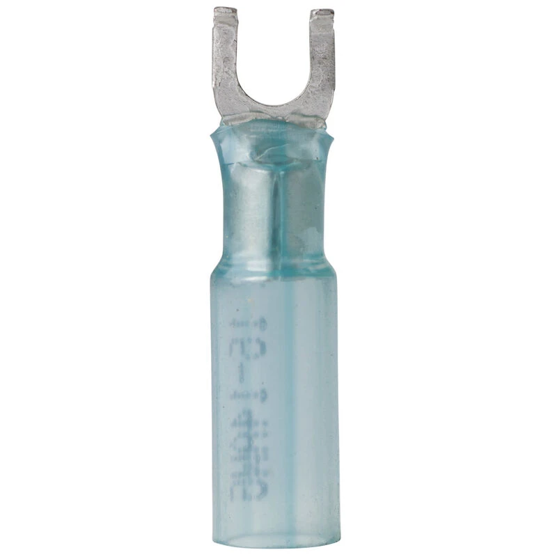 These heat shrink terminals include a heat-activated adhesive built into the sleeve of the heat shrink tubing. When heated, they form a watertight seal between the terminal and the wire you are connected to and provide excellent vibration and strain relief.