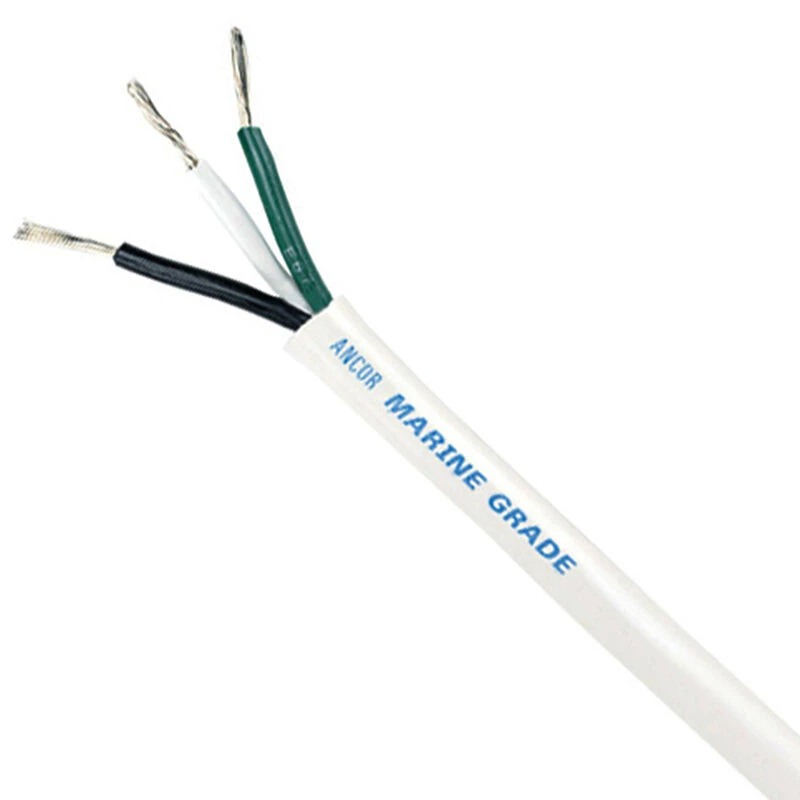 ANCOR Round Triplex Wire is constructed with premium vinyl insulation that is rated at 600 volts, 105 degrees C dry and 75 degrees C wet, stays flexible even in extreme cold (-40 degrees F/C) and resists salt water, battery acid, oil, gasoline, heat, abrasion and ultra-violet radiation.