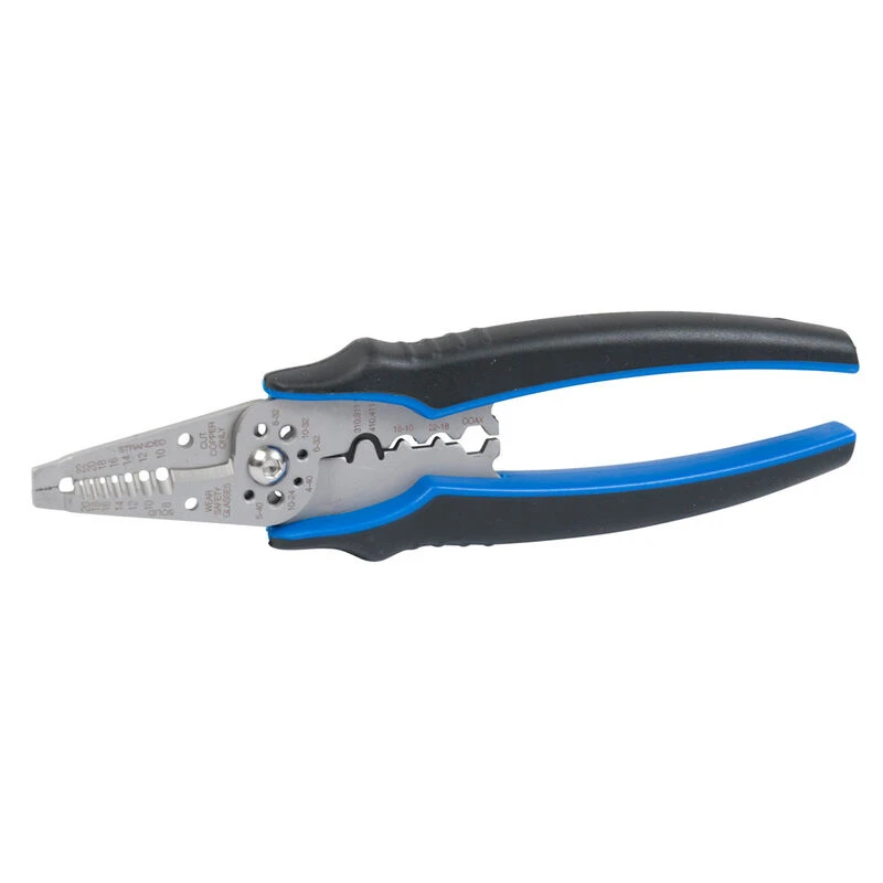 - Wire Gauges Handled: Crimps 10-22 AWG insulated and non-insulated terminals and coaxial connectors; cuts and strips 8-22 AWG solid and 10-24 AWG stranded wire; cuts and rethreads 4-40, 5-40, 6-32, 8-32, 10-24 and 10-32 screws