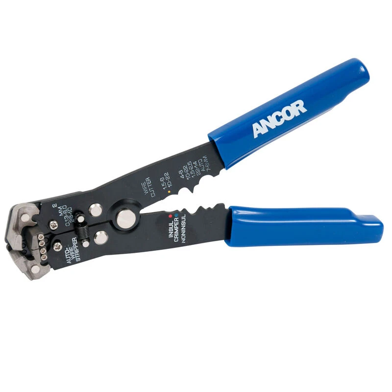 Automatic jaw-load wire stripper self-adjusts to strip wire. Crimps insulated terminals.
