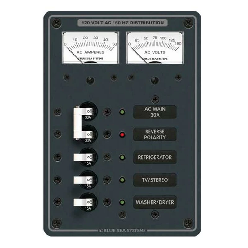 Blue Sea Systems Panels reflect the quality and attention to detail that premier yacht designers and builders specify for the finest custom and production yachts, as well as commercial vessels worldwide. These panels are cut from heavy 1/8″ 5052 aluminum alloy and undercoated with a MIL-C-5541C spec. immersion coating for a lifetime of corrosion resistance. A two-part polyurethane slate finish ensures that each panel will add a handsome, professional touch to your boat’s electrical system.