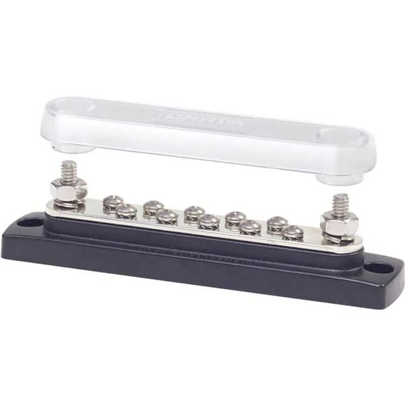 Get your AC or DC wires shipshape with a 2 stud, 10 screw terminal bus bar.