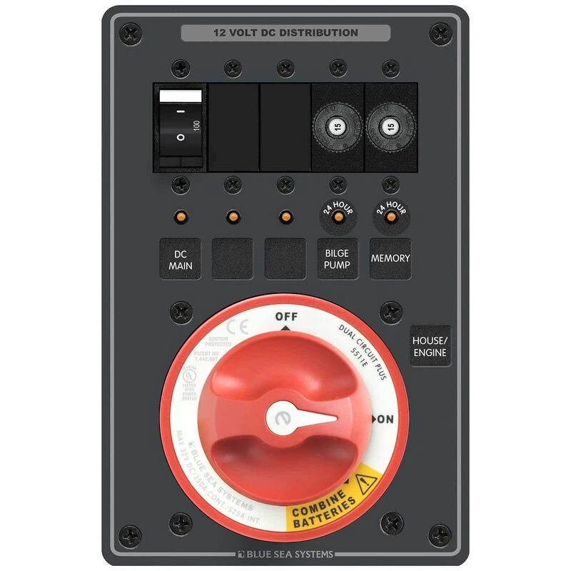 Each panel is ignition protected for use on gasoline powered boats and can be mounted in four different orientations. A DC main circuit breaker and 24-hour branch circuit protection are included for accessories that do not require switching or are switched elsewhere: such as bilge pumps, CO sensors, clocks and stereos. Room for expansion is provided on each panel to add circuits and customize the installation. The Blue Sea Systems Battery management panels are great way to simplify battery management.