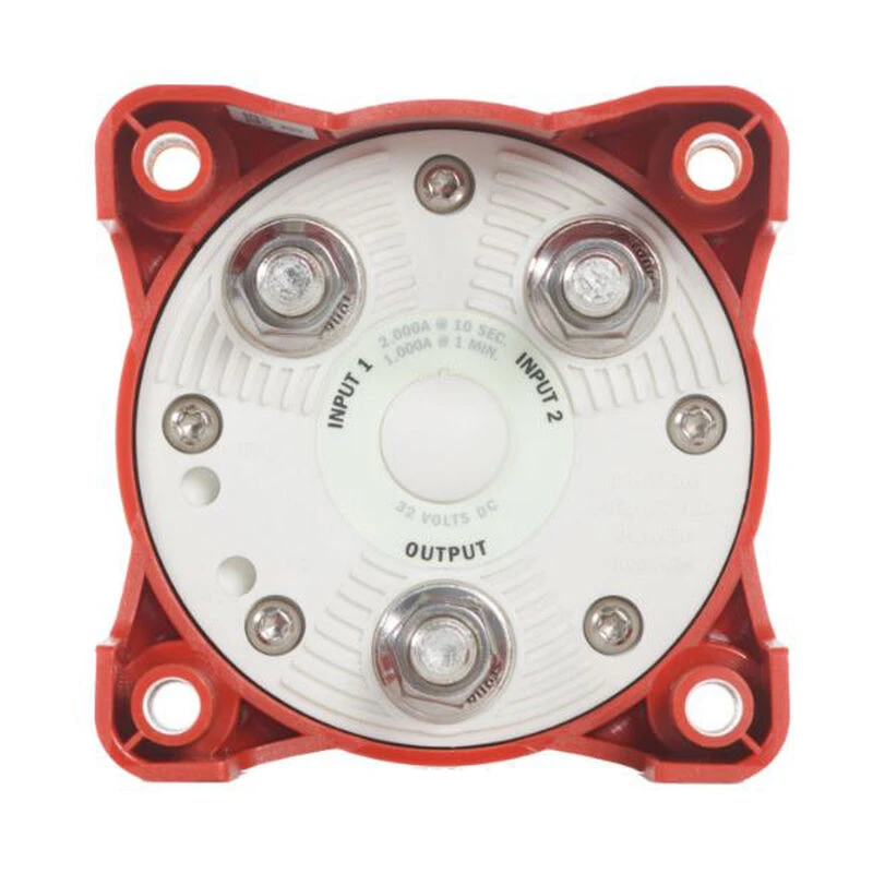 A compact battery switch that offers multiple installation options. Switches isolated battery banks to all loads or combines battery banks to all loads.