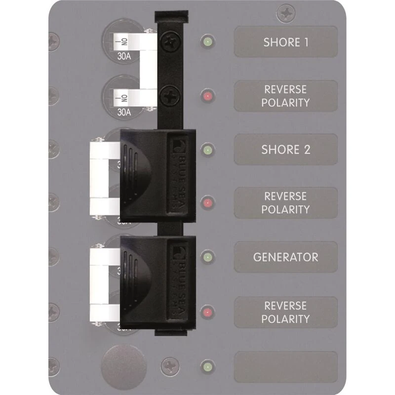 Allows only one double-pole AC circuit breaker to be activated at a time. Guarantees that AC power from two or three sources (shore power and genset or inverter) will not be mixed. Fits all World or A-Series and Rocker double-pole circuit breakers. Uses circuit breaker-mounting screw holes. Requires no special panel modification. Includes mounting screws.