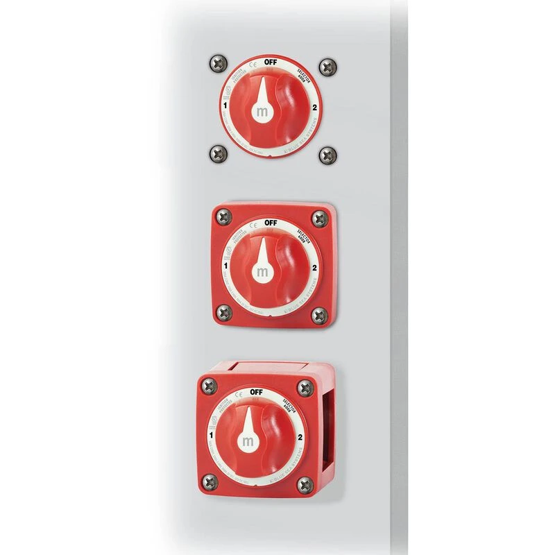 The BLUE SEA SYSTEMS m-Series (Mini) 3 Position Battery Switch is compact and waterproof and can be installed almost anywhere. The small footprint and three mounting options make installation easy.