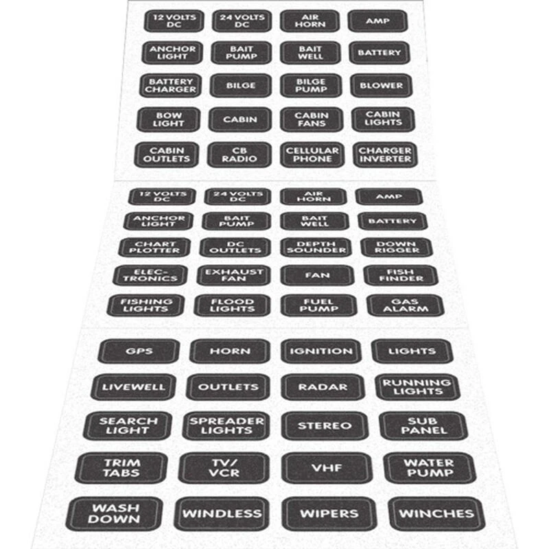 Blue Sea Systems small format labels are a great way to finish the installation of a new panel or update an existing panel. This set of 60 commonly used DC labels are durable, weatherproof and can be backlit (depending on the panel). See detailed label list below.