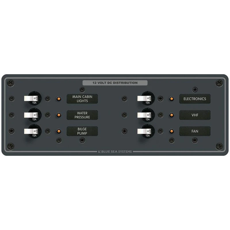 BLUE SEA SYSTEMS Traditional Metal DC Circuit Breaker Panel, 6 Position