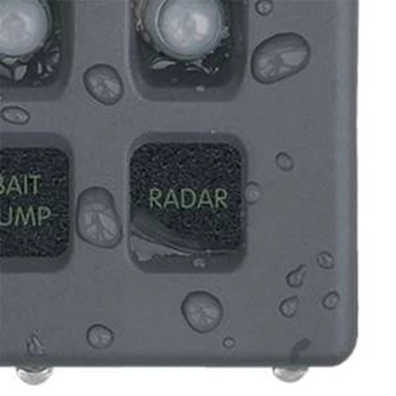 WeatherDeck® waterproof breaker panels are ready to take on the harshest of environments. They can be oriented in any of four different ways to expand your mounting location options. Included square circuit labels are designed to be placed above or below in the horizontal configuration, and to the right or left in the vertical. Rugged UV stabilized waterproof boots. Green LEDs illuminate circuit labels to aid low light readability. Circuit reset buttons are located between switch and label for easy access.