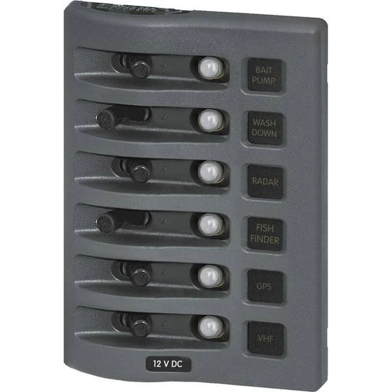 A rugged breaker panel that is ideal for flybridge or open cockpit installations