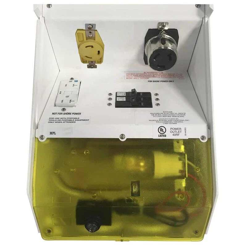 This shore power option has multiple modular mounting options to fit your personal dock needs. Economical and space-saving, the Newport Harbor Mate can easily be installed on a dock box or piling, providing a mini power source to your marina or residential dock.Â