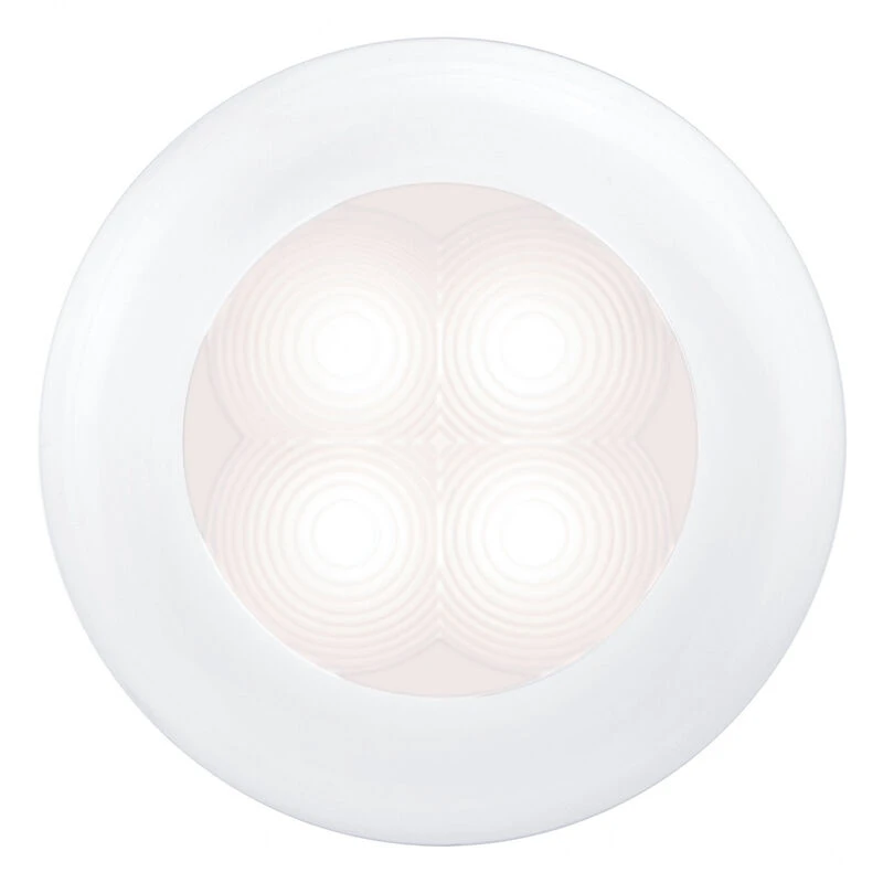 The HELLA MARINE Slim Line Round Courtesy Light is an attractive, energy-efficient, no-maintenance solution for a variety of interior and exterior lighting applications. They consume a fraction of the energy of traditional bulb lamps and run very cool due to their low current draw, providing safer installation and money savings. Advanced lens technology provides an even spread of soft light without glare or eyestrain. Feature four LEDs. Shock, impact and vibration-resistant for an ultra-long service life. Each lamp is completely sealed and waterproof (rated IP67).