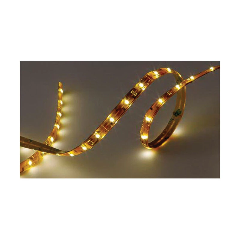 Imtra’s 24V DC flexible LED strip tape is a linear strip of low power LED boat lights encased in a flexible, clear epoxy resin. The thin diameter & extremely low profile form factor allow it to be installed in areas too confined for traditional rope light products. Wide angle SMD LEDs placed every 2/3″ result in homogenous & even light distribution without shadows or gaps. For ease, each section is supplied with 3M double sided tape already installed on the product. Each section comes with wire leads so your LED Strip Tape is ready to connect to your DC power source. Flexible LED strip tape may be cut to suit every 2″ (12 Volts version) or every 4″ (24 Volts version). Applications include cove lighting, under cabinet lighting, glass cabinets, wine racks, closets, etc.