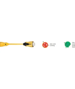 The EEL™ (Easily Engaged Lock) ShorePower Cordset has a jaw-clamp design that offers one-handed operation. Simply squeeze the wings, align and insert into your boat’s existing inlet then release and rotate to create a secure, waterproof seal. A built in light in the center of the male (boat side) plug makes connecting to shorepower at night easy. LED power indicator lights at both ends confirm that power is running through the cord and serve as an alert that the cord is plugged into the shore side power source.