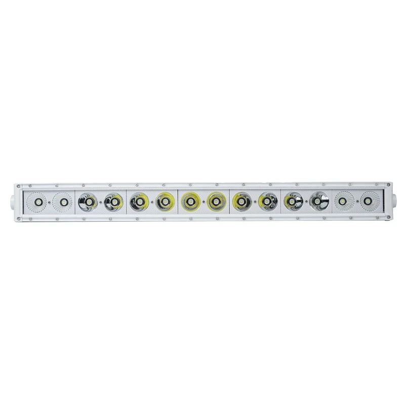 The Marine Sport Lighting LED Light Bars are a revolutionary way to add high power light output to any surface area with a straight or curved surface for docking, flood or spreader applications. These light bars are designed for fresh and salt water marine usage, but can also be used in automotive, UTV, and ATV applications where a white coated shell is desired. To make these bars even more attractive, Race Sport uses a white facing tile instead of the common chrome tiles to give this a TRUE “WHITE OUT” look!