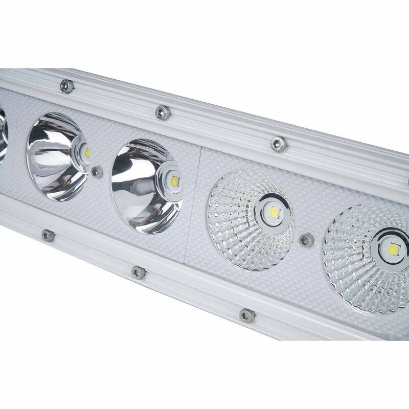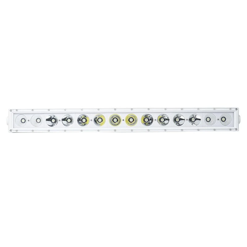The Marine Sport Lighting LED Light Bars are a revolutionary way to add high power light output to any surface area with a straight or curved surface for docking, flood or spreader applications. These light bars are designed for fresh and salt water marine usage, but can also be used in automotive, UTV, and ATV applications where a white coated shell is desired. To make these bars even more attractive, Race Sport uses a white facing tile instead of the common chrome tiles to give this a TRUE “WHITE OUT” look!
