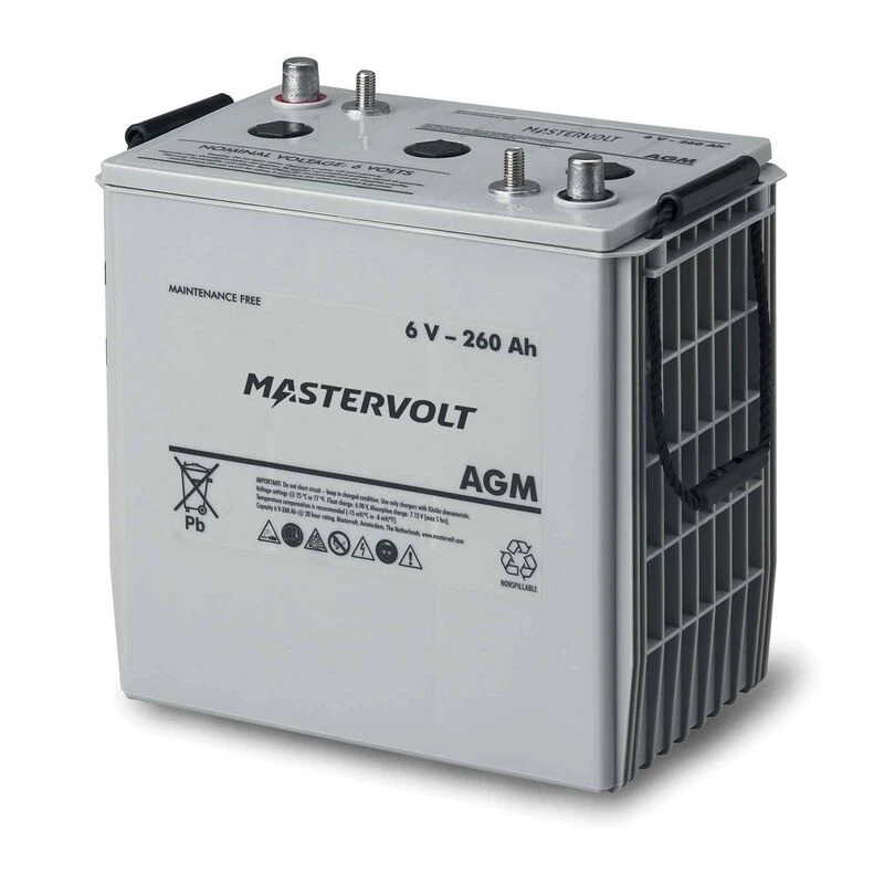 Mastervolt AGM batteries stand apart from other AGM’s in their long lifespan, variety of configurations and adaptability. They are a great all-purpose battery. The ability to deliver high bursts of power make them suitable for starting applications. Their high tolerance for cycling make them suitable for house bank applications. The posts can be removed and configured to match existing cabling by changing the terminas (not included); eliminating additional wiring. Mastervolt AGM batteries are available in conventional group sizes with various ratings so there is one available to fit your needs. Upgrade to an AGM battery and increase the versatility of your DC system.