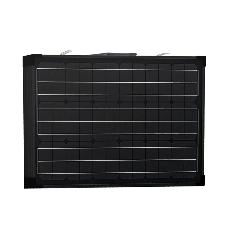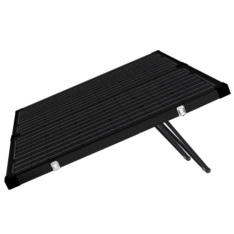 Briefcase style solar panel easily folds up and includes a convenient handle for transporting and storing. Equipped with an aluminum frame so it is durable and sturdy. Includes a tilt mount for maintaining the optimal angle to collect the sun’s rays.