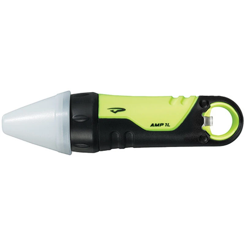 The tiny Amp 1L packs a 100-lumen Maxbright LED. With a large carabiner loop, this handheld light can hang off of a gear loop. Amp 1L comes with a snap-on cone to convert your flashlight into a marker light or to provide area lighting.