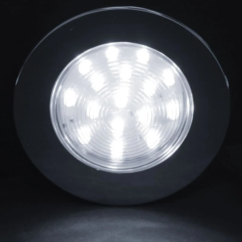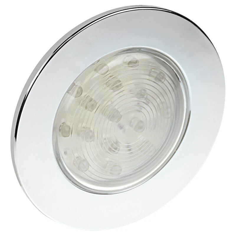 The WEST MARINE 16-LED Accent Light features bright white LED lights that are extremely energy-efficient and can be recess-mounted inside or out with a fully potted LED array board for total moisture resistance. And because they don’t use bulbs with filaments, you won’t have the cost of replacing them. Includes a chrome-finish bezel for a styled look.