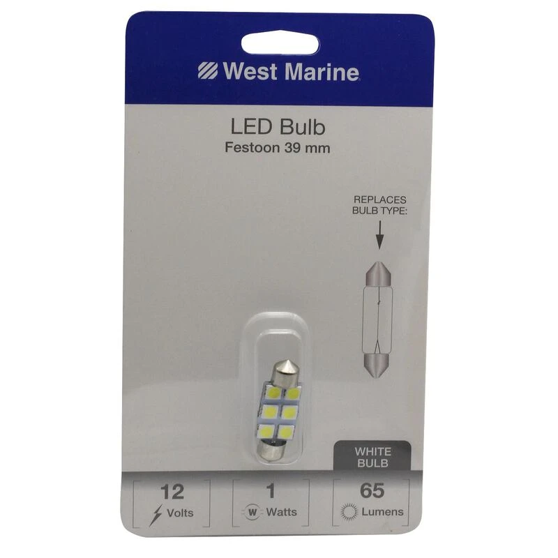 The WEST MARINE Festoon 39mm LED Bulb has been designed as a replacement and upgrade for standard halogen, Xenon and incandescent filament bulbs, offering dramatically lower power consumption and heat generation, while having much greater lifetime and shock resistance. For even greater light output and quality as well as higher efficiency (more light per watt) please look to our Premium series bulbs.