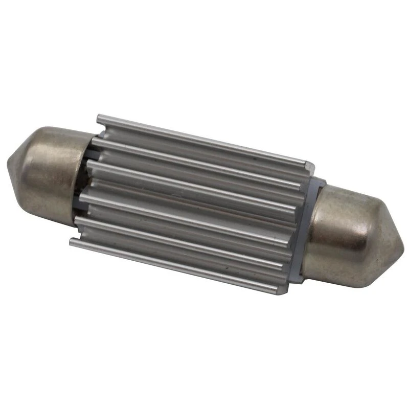 This bulb replaces and has similar brightness to 10 watt Halogen/Filament Festoon bulbs. Fits many 36-41mm sockets. This is the standard length festoon. 11-14VDC input range. Blue.