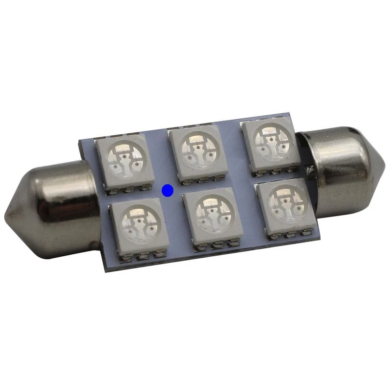 This bulb replaces and has similar brightness to 3 to 5 watt Halogen/Filament Festoon bulbs, and is Blue in Color. Fits many 30-33mm sockets which call for 1 1/8″ or 1 1/4″ bulbs. This is the short or stubby festoon. 11-14VDC input range.