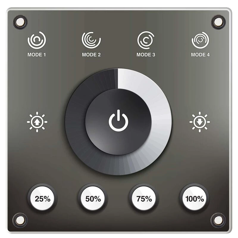 The WEST MARINE Helm Mount LED Dimmer is designed for use with any Dimmable LED light. Touch sensitive faceplate with 4 preset lighting functions.