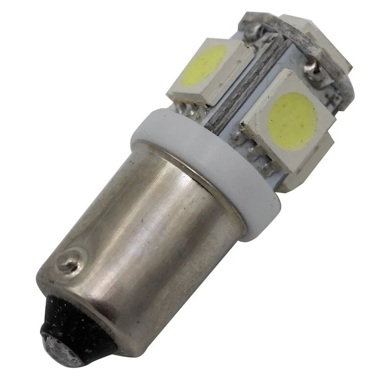 This bulb replaces and has similar brightness to 3 watt traditional Mini Bayonet bulbs using the small / short globe. Cross reference #’s BA9S, G3, T3, 1445. 51, 1896, 586,1889, 64115, 1895, 6253, 182, 1445, 756, 17053, 64113, 3893, 1893, 363, 216, 1816, 64111, 3886X, 1892, 1815, 53X, 57, 1891, 53, 293, 1895A, 57LL, 53LL, 1445LL, 1895LL, 1893LL, 3893LL, 1891LL, 1816LL. Single contact, 9mm base. 11-14VDC input range. 55 max lumens, radiates in all directions.