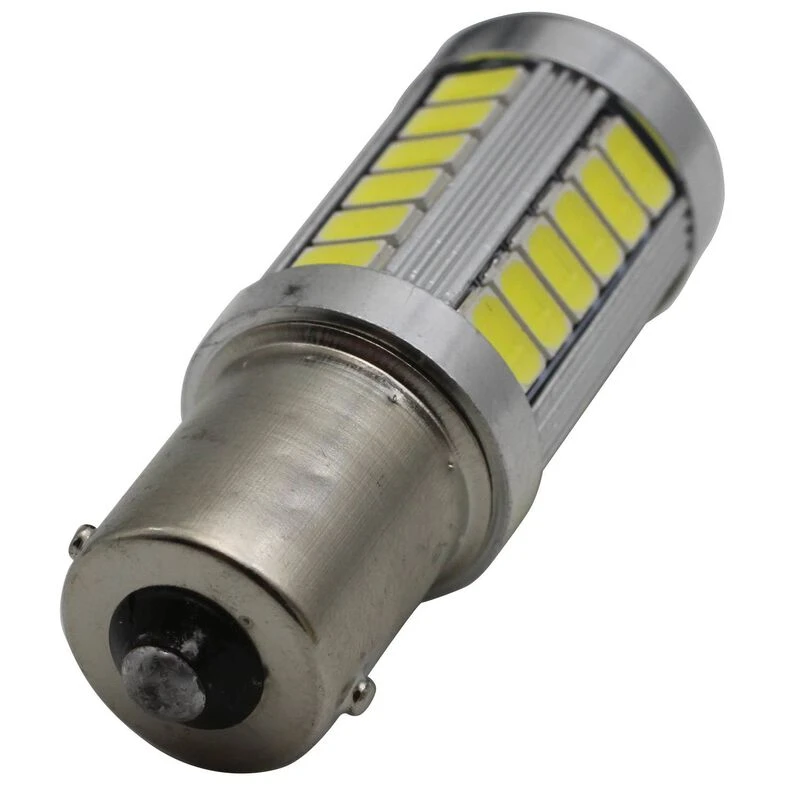 This bulb replaces and has similar brightness to 25 watt traditional bulbs using the Tall globe. Cross reference #’s BA15S 1141, 2396, 1156, 67, 87, 12088, 1156NA, 97NA, 1095, 93, 97A, 1295NA, 97, 3497, 1073, 1295, 1195, 1156A, 7506, 199, 631, 1156ST, 1073LL, 1156LL, 7506L, 3497LL, 7506ST, 1156ALL, 97LL, 7506LL, 93LL, 631LL, 1141LL, 5008, 5007, 1155, 89, 57X, 105, 1003, 98, 1003LL, 67LL, 89LL, 105LL, 5008LL, 5007LL, 1155LL. Single contact on the base and in-line pins. 11-14VDC input range. 415 max lumens, radiates in all directions.