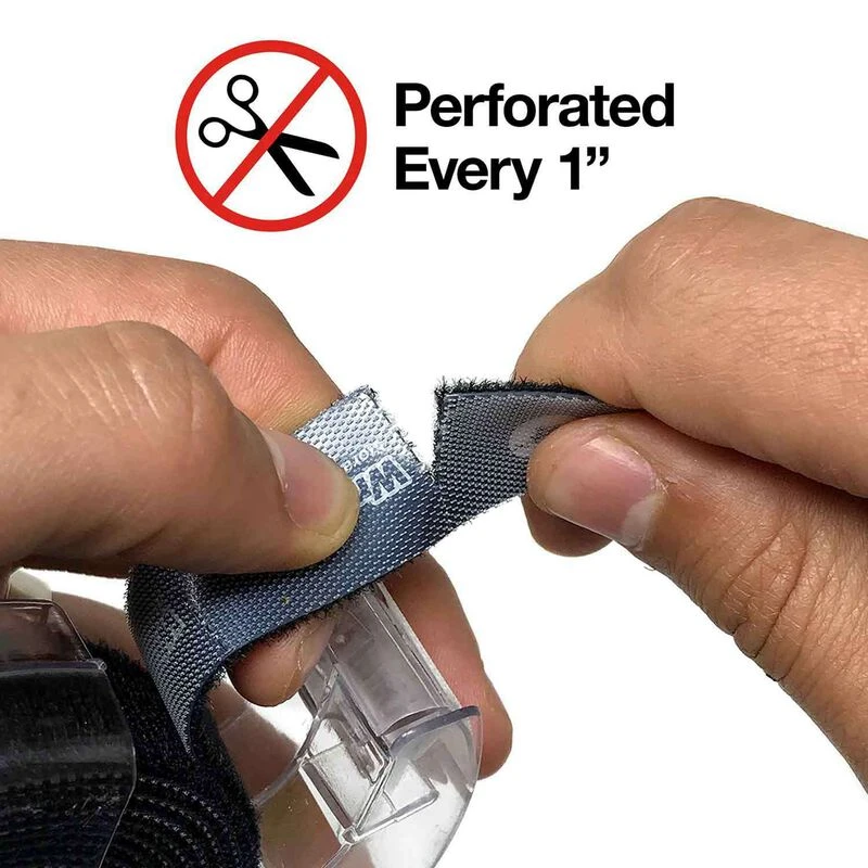 If you have lots of cord-cleanup to do, but aren’t allowed to run with scissors, this Self-Gripping Perforated Roll lets you tear off as much or as little hook and loop as you need. No scissors required! Each roll is 6-1/2 in. of hook and loop with perforations every 1 inch.